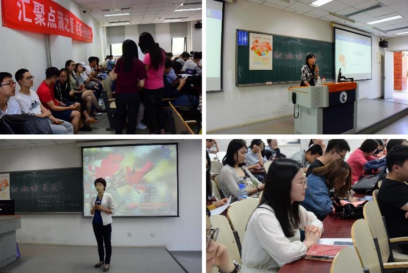 为了加强献血知识的普及,降低献血不合格率,提高现场的排队效率,确保本次献血活动能够有序进行,特在5月4日青年节召开了此次献血动员会,由校医院邀请北京市血液中心的老师为大家科普知识,由中央财经大学红十字会学生分会为同学们准备注意事项、现场流程说明等指南。