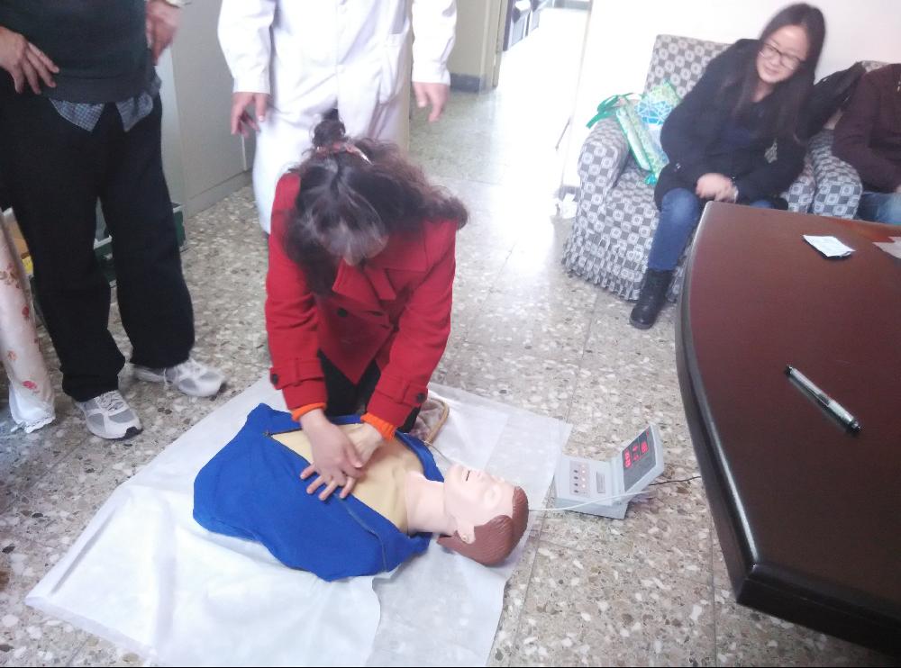 参加活动的单位有沙河校区社会发展学院、图书馆、团委红十字会及保卫处等单位,校医院党支部按照约定的时间以由党支部为主体,党员带头,亲自带着培训工具去各单位现场培训急救知识。培训主要讲解了心肺复苏和创伤救护的基本理论和相关操作。对于心肺复苏(CPR),讲解心肺复苏术流程并进行了徒手单人或双人心肺复苏操作示范;对于创伤救护,讲解注意事项,伤员分类,检伤分类法,快速判定头胸腹致命伤,三角巾包扎、骨折夹板固定和伤员搬运的实际操作。校医院医务人员亲自示范,讲解不同操作时应注意的问题,例如胸部按压的力度,间隔的时间和技巧,如何保证呼吸道的通畅干净等。使接受培训的学员对这些基本的急救操作有了更加感性的认识。在操作实践中,各单位参培人员踊跃参加动手实践,兴趣浓厚,期望掌握更多的急救知识和技能,能够提高处理日常突发事件时的应急反应和处置能力。